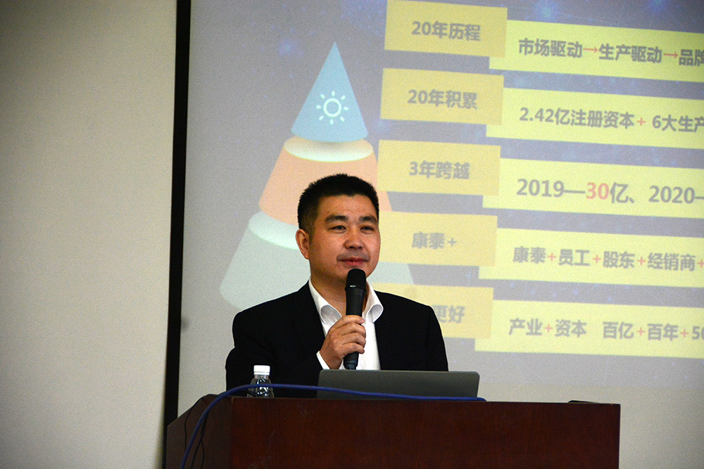 副總裁鄭光鏵的動(dòng)員講話結(jié)合PPT進(jìn)行,生動(dòng)形象的向銷售生力軍介紹了康泰的基本情況、發(fā)展戰(zhàn)略、人才戰(zhàn)略和營(yíng)銷戰(zhàn)略。表示,希望銷售生力軍盡快了解康泰、熟悉產(chǎn)品、掌握營(yíng)銷的工具和打法,盡快走向營(yíng)銷市場(chǎng),開展實(shí)戰(zhàn),創(chuàng)造業(yè)績(jī),實(shí)現(xiàn)人生價(jià)值。