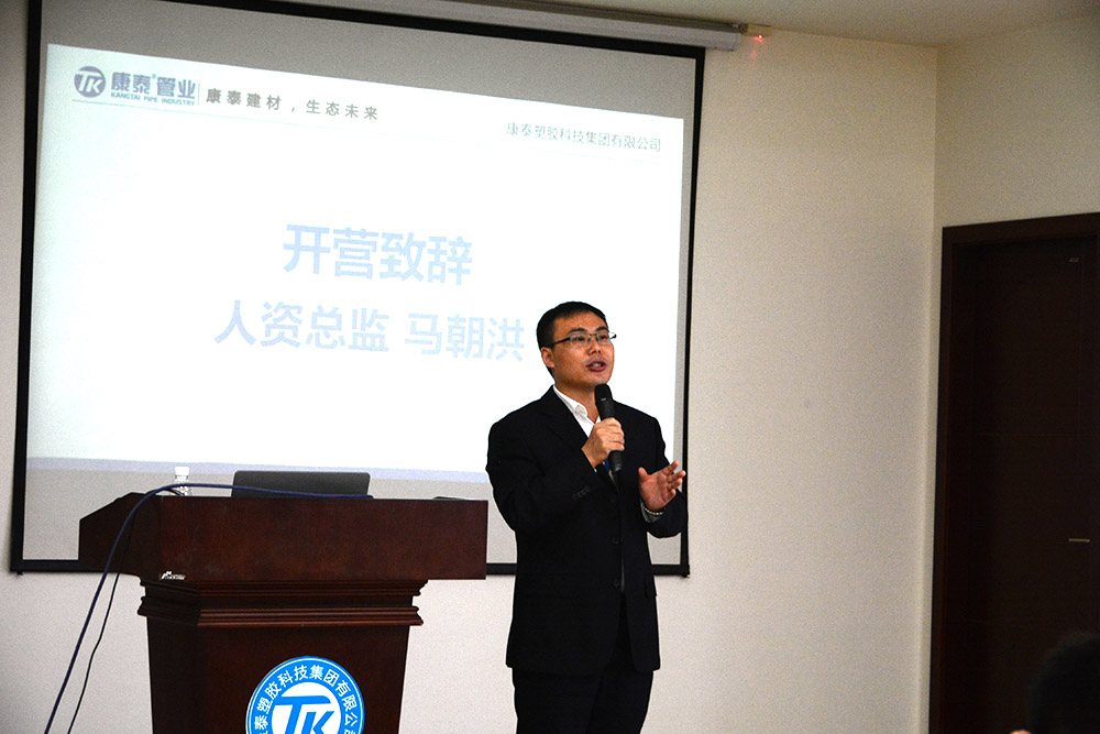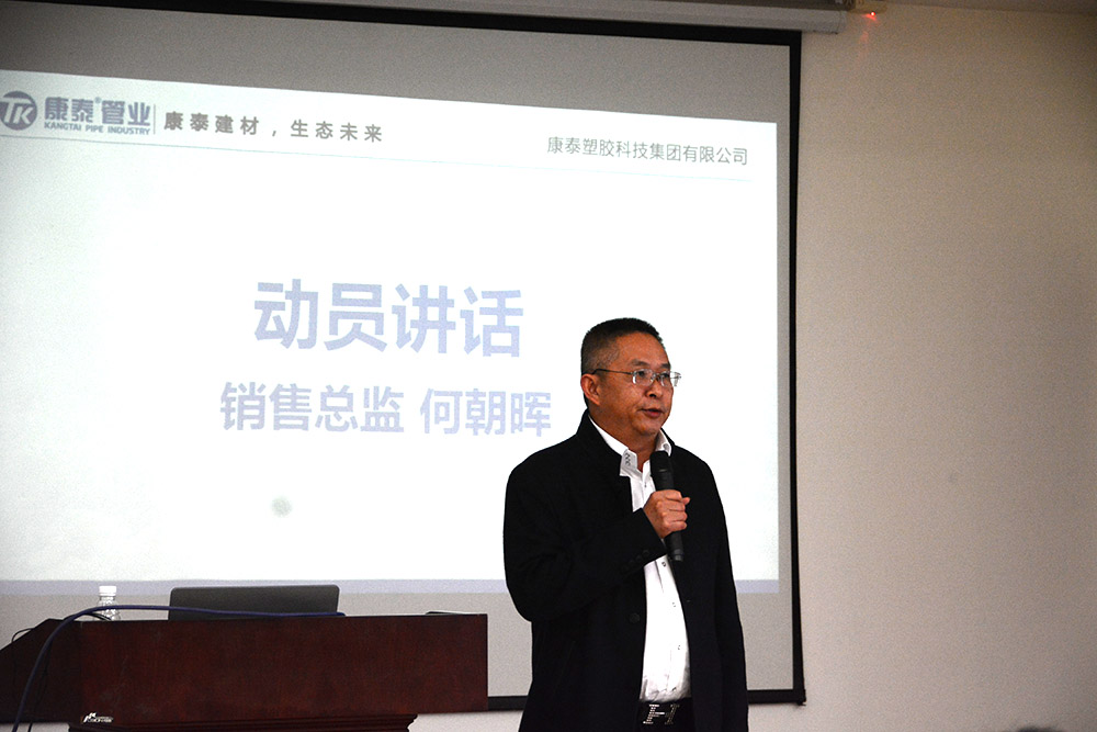 銷售總監(jiān)何朝暉在動(dòng)員講話中首先對(duì)銷售生力軍的加入表示了歡迎。并表示,做營(yíng)銷,首先要了解產(chǎn)品,更要全面熟悉、了解康泰的發(fā)展歷程、企業(yè)文化和發(fā)展戰(zhàn)略,聚焦塑膠管道未來(lái)的發(fā)展趨勢(shì),做到戰(zhàn)必勝,勝必果。