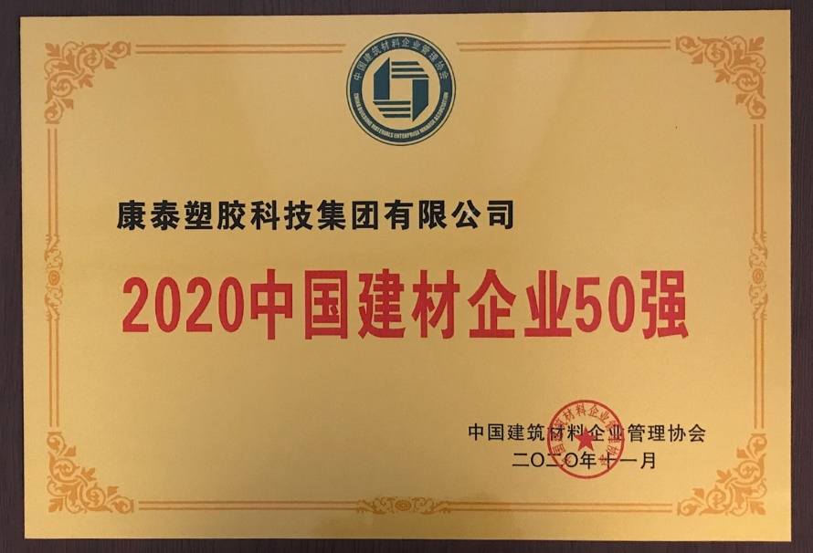日前,由中國(guó)建筑材料企業(yè)管理協(xié)會(huì)和中國(guó)建筑材料工業(yè)規(guī)劃研究院主辦的“2020中國(guó)建材企業(yè)發(fā)展論壇”在京舉行。會(huì)議邀請(qǐng)相關(guān)部委負(fù)責(zé)人、行業(yè)專家學(xué)者 和企業(yè)家聚焦行業(yè)當(dāng)前熱點(diǎn)難點(diǎn),講解闡述國(guó)家最新產(chǎn)業(yè)政策及行業(yè)狀況與未來趨勢(shì)。會(huì)議還同時(shí)發(fā)布了相關(guān)榜單。康泰集團(tuán)憑借在行業(yè)內(nèi)的突出表現(xiàn),榮獲2020 “中國(guó)民營(yíng)建材企業(yè)20強(qiáng)”、 “中國(guó)建材企業(yè)50強(qiáng)” 、“中國(guó)管件管材企業(yè)10強(qiáng)”三項(xiàng)榮譽(yù)。