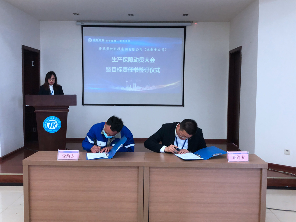 隨后,集團(tuán)副總裁兼成都康泰總經(jīng)理張文霖宣讀了《成都公司制造系統(tǒng)人事任命》,凝聚信心共識,提升生產(chǎn)力。任命宣讀結(jié)束后,成都康泰副總經(jīng)理朱鵬飛與新任命的成都康泰制造系統(tǒng)中層管理人員現(xiàn)場簽署了經(jīng)營目標(biāo)責(zé)任書,責(zé)任落實到人,獎罰分明,更好完成任務(wù)。同時,為切實加強(qiáng)安全生產(chǎn),保護(hù)生態(tài)環(huán)境,實現(xiàn)零事故、零投訴、高質(zhì)量的可持續(xù)發(fā)展,還現(xiàn)場簽署了安全目標(biāo)責(zé)任書。