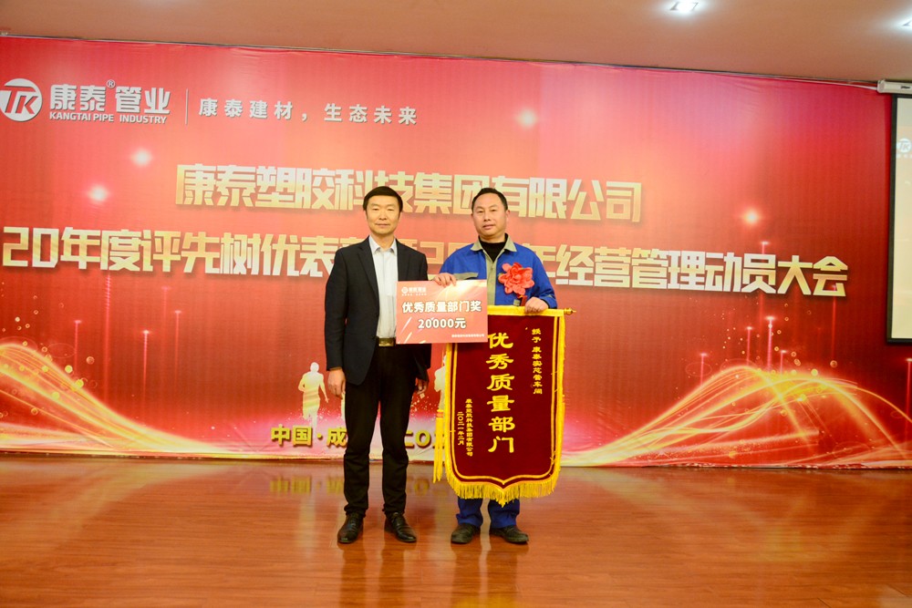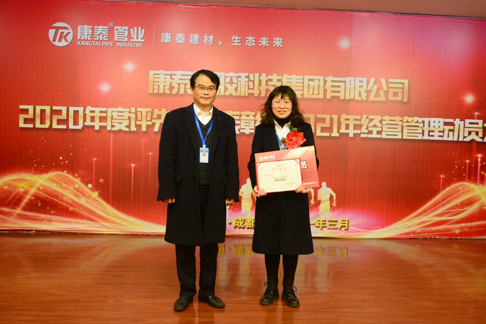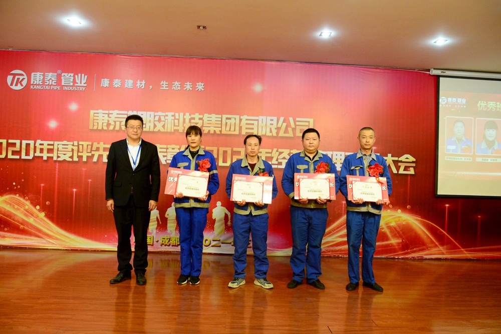 大會(huì)首先進(jìn)行第一項(xiàng)議程,先進(jìn)個(gè)人和集體表彰。集團(tuán)和成都子公司領(lǐng)導(dǎo)分別上臺(tái)宣讀各獎(jiǎng)項(xiàng)獲獎(jiǎng)人員和集體的名單并為他們進(jìn)行了頒獎(jiǎng)。2020年,康泰集團(tuán)應(yīng)對(duì)疫情挑戰(zhàn)、保持定力、改革創(chuàng)新、提升效率、開(kāi)拓進(jìn)取、真抓實(shí)干,把握行業(yè)政策的新變化和新形勢(shì),圓滿完成了各項(xiàng)工作任務(wù)指標(biāo),涌現(xiàn)了一大批團(tuán)結(jié)協(xié)作、開(kāi)拓進(jìn)取的先進(jìn)集體和愛(ài)崗敬業(yè)、勤奮工作的先進(jìn)個(gè)人。2021年是集團(tuán)“五五戰(zhàn)略”規(guī)劃的開(kāi)局之年,希望受到表彰的先進(jìn)單位和先進(jìn)個(gè)人要珍惜榮譽(yù),再接再厲,保持和發(fā)揚(yáng)精益求精、嚴(yán)謹(jǐn)專注、創(chuàng)新傳承的工匠精神,續(xù)寫(xiě)更大的輝煌。
