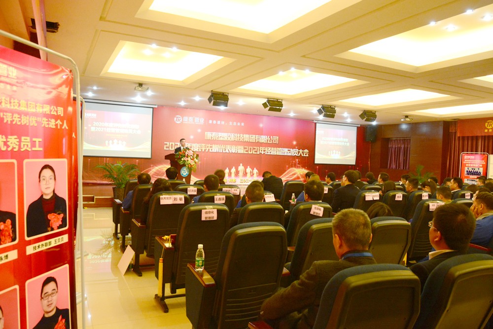 受新冠疫情的影響,原定1月舉行的2020年度年終表彰大會(huì)延期到3月舉行。下午1時(shí)30分,會(huì)議在嘹亮的《康泰之歌》中正式開(kāi)始。本次會(huì)議共有五項(xiàng)議程分別是,對(duì)2020年度先進(jìn)個(gè)人和集體進(jìn)行表彰,聽(tīng)取集團(tuán)領(lǐng)導(dǎo)的《集團(tuán)五五戰(zhàn)略規(guī)劃》報(bào)告、《2021年銷售規(guī)劃》報(bào)告、《2021年制造規(guī)劃》報(bào)告,最后是總結(jié)動(dòng)員講話。