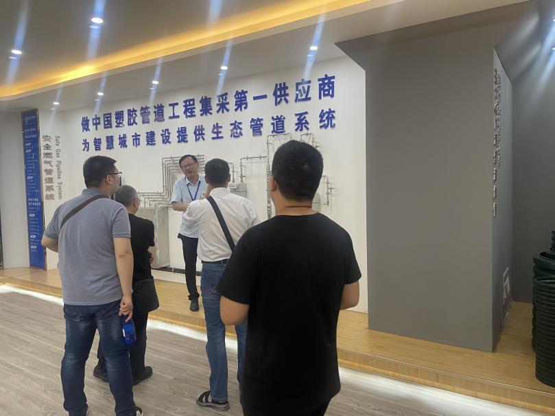 參觀前,雙方在會客室一同觀看了康泰集團企業(yè)宣傳片。隨后,副總經理林化平帶領大家來到展廳,對康泰集團的發(fā)展歷程以及公司現有產品,特別是公司推出的新品MPVE、鋼絲網骨架復合管等做了詳細的講解與介紹。在生產車間,河南中核五院領導仔細觀看了康泰產品生產過程,并從原材料進廠把關、管道過程生產、產品質量管控以及出產檢驗作了詳細的了解,對公司生產現場的系統(tǒng)化、規(guī)范化表示贊賞。