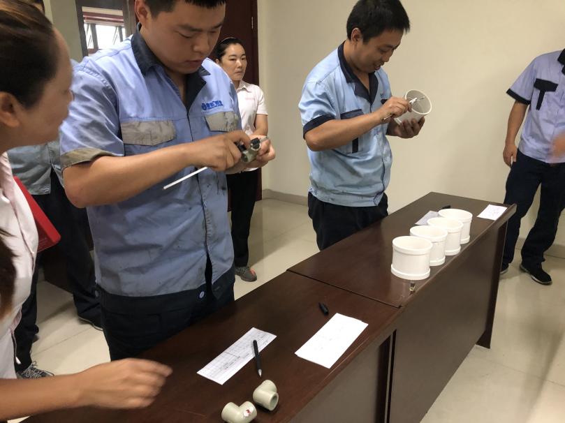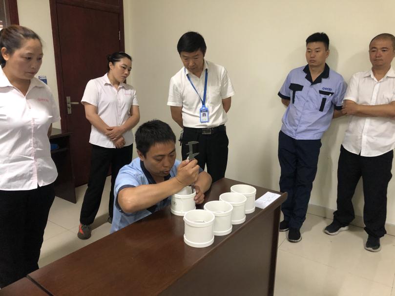 活動開始前由質(zhì)量系統(tǒng)副總監(jiān)徐水平、質(zhì)量部長李偉,分別對“質(zhì)量月”活動的由來、意義、目的和比賽的規(guī)則、比賽內(nèi)容作了講解和介紹。比賽內(nèi)容要求:1、測量產(chǎn)品標(biāo)樣由車間質(zhì)量部班長(甘艷君、周鳳瓊、吳海燕)提供,標(biāo)注序號、測量位置;2、參賽人員使用同一標(biāo)樣,同一儀器,測量同一位置,進(jìn)行測量結(jié)果數(shù)據(jù)統(tǒng)計,并記錄;3、質(zhì)量部部長李偉帶領(lǐng)的評委團(tuán),對參賽人員的測量手法正確度、測量儀器熟練度和測量結(jié)果進(jìn)行考核評比。