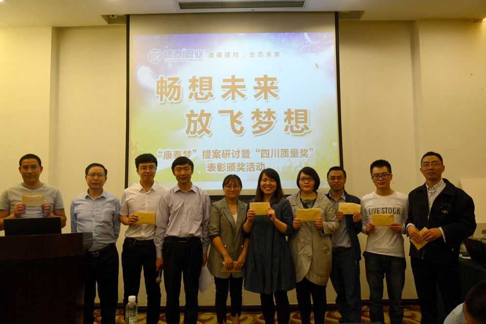 為打造品質(zhì)康泰,提高市場競爭力和公司美譽度,追逐康泰夢想,增強中高層管理團(tuán)隊凝聚力。5月6日下午,四川質(zhì)量獎內(nèi)部表彰暨康泰夢提案揭曉會議在大邑縣道源圣城國際大酒店召開。會議由總裁辦、市場中心、生產(chǎn)中心、質(zhì)量中心、技術(shù)中心聯(lián)合主辦??堤┘瘓F(tuán)董事長兼總裁林云青,副總裁鄭光鏵、張文霖以及母公司中層以上管理人員,各中心參與四川省質(zhì)量獎申報人員,康泰夢獲獎提案和入圍提案人員等參加了此次會議。