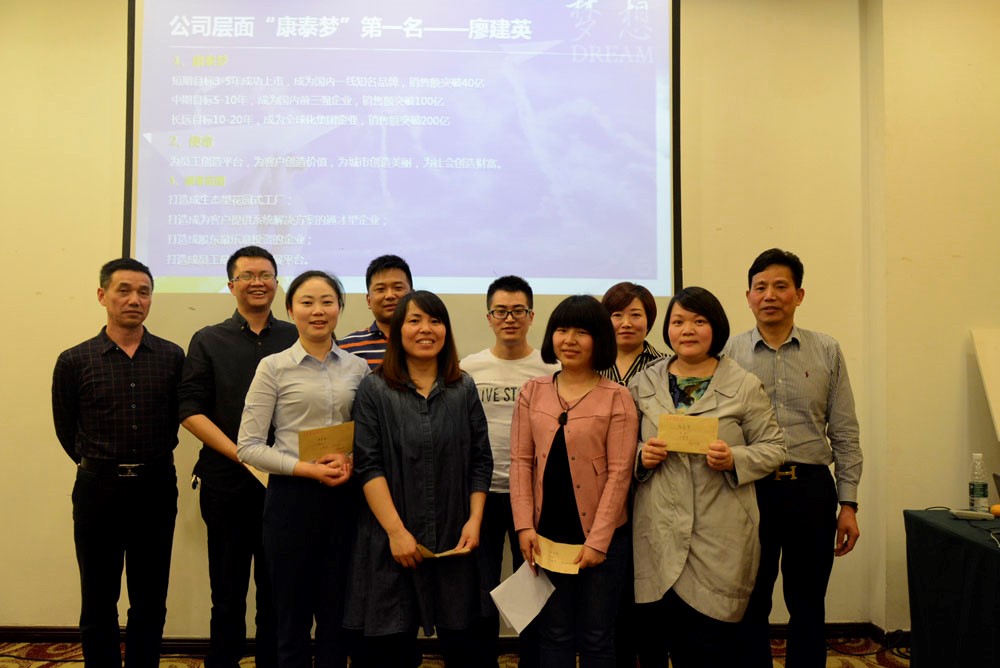一個偉大的企業(yè),必須要有偉大的夢想。只有有夢想、有企業(yè)文化、有企業(yè)內(nèi)涵的企業(yè),才能永葆基業(yè)長青。經(jīng)過十八年發(fā)展積累,今天的康泰,已經(jīng)全面啟動“創(chuàng)新驅(qū)動、品牌營銷、智能制造、轉(zhuǎn)型升級”的十三五發(fā)展戰(zhàn)略,來到了搭建“康泰+”平臺共享,打通上下游產(chǎn)業(yè)鏈,五年實現(xiàn)上市,產(chǎn)業(yè)+資本轉(zhuǎn)型升級的關(guān)鍵時期。為完成上市的中期戰(zhàn)略目標(biāo),實現(xiàn)“百億康泰、百年康泰,成為中國民營企業(yè)500強”的偉大康泰夢,康泰集團(tuán)面向全集團(tuán)的中層以上干部發(fā)出了康泰夢提案征集的邀約。本次康泰夢提案征集分為公司層面、中心層面和個人層面三個板塊。這既給予了每個人充分的想象空間,使每個人能夠盡情的抒發(fā)夢想,樹立自己的人生目標(biāo),又把大家對公司的期待凝聚成了勤奮工作、不懈奮斗的源泉,使企業(yè)永葆發(fā)展的活力。夢想邀約發(fā)出后,大家積極參與,暢想未來,書寫夢想,截止截稿日,共征集提案62份。其中,成都母公司45份,河南和浙江17份。經(jīng)過評委公平、公正、公開的評選,共有10份提案脫穎而出獲得前三名,8份提案獲得入圍獎。獲獎提案和入圍提案的人員分別現(xiàn)場宣讀了自己的康泰夢,并接受了表彰。