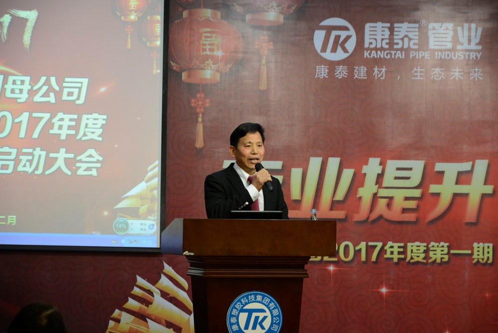 ? ? ? ?下午4時,全體人員起立,高唱《康泰之歌》,大會在恢弘有力的旋律中正式開始。會上,副總裁兼市場總監(jiān)鄭光鏵首先發(fā)言,對陪伴康泰一路走來,并共同來到二次大跨越、大發(fā)展時代的老員工表示了感謝。隨后,鄭總從中國制造業(yè)的現(xiàn)狀、塑膠建材行業(yè)以及康泰的機(jī)遇與挑戰(zhàn)、生產(chǎn)系統(tǒng)未來發(fā)展方向、生產(chǎn)系統(tǒng)團(tuán)隊打造和思維轉(zhuǎn)變等五個方面就公司發(fā)展戰(zhàn)略、生產(chǎn)系統(tǒng)發(fā)展、人力資源打造進(jìn)行了演講和闡釋。鄭總表示,經(jīng)過17年的生產(chǎn)積累,康泰在經(jīng)歷了市場驅(qū)動、生產(chǎn)驅(qū)動的變革之后,已經(jīng)走在了同行業(yè)前列,打造了相對高效、性價比優(yōu)的優(yōu)勢。我們一定要繼續(xù)堅持安全生產(chǎn)、狠抓生產(chǎn)質(zhì)量,著力打造良心工程、放心工程,三十年好用的工程。