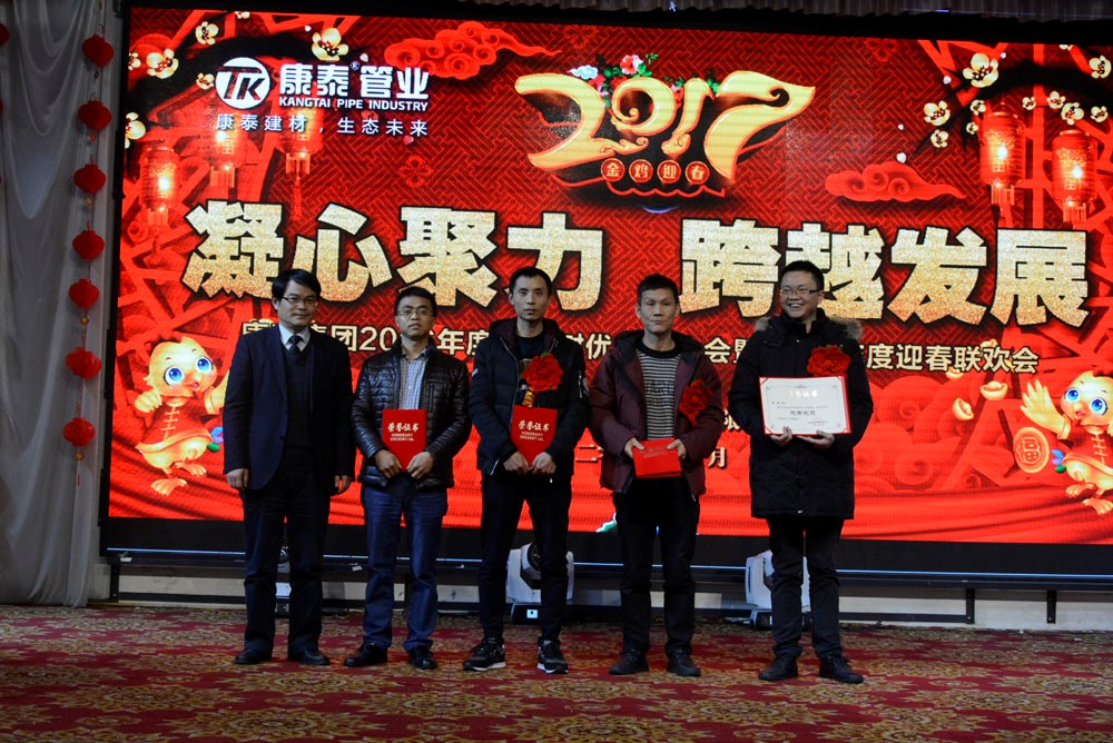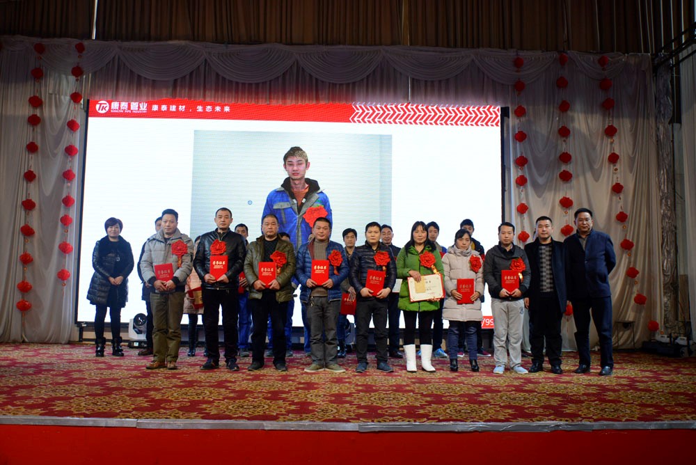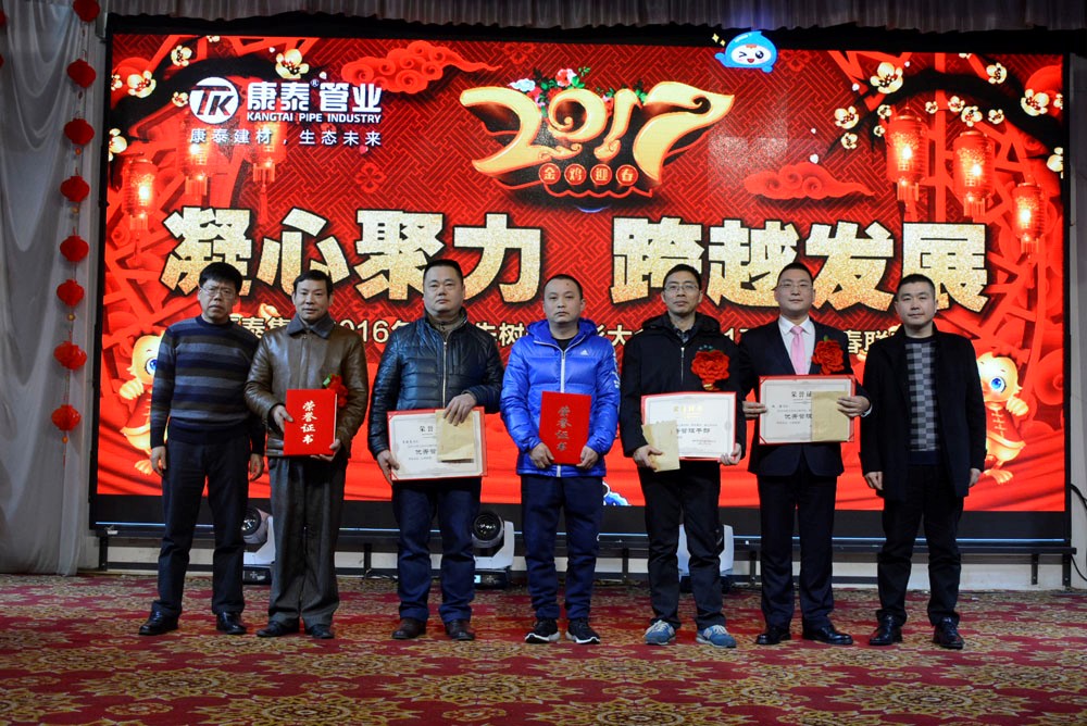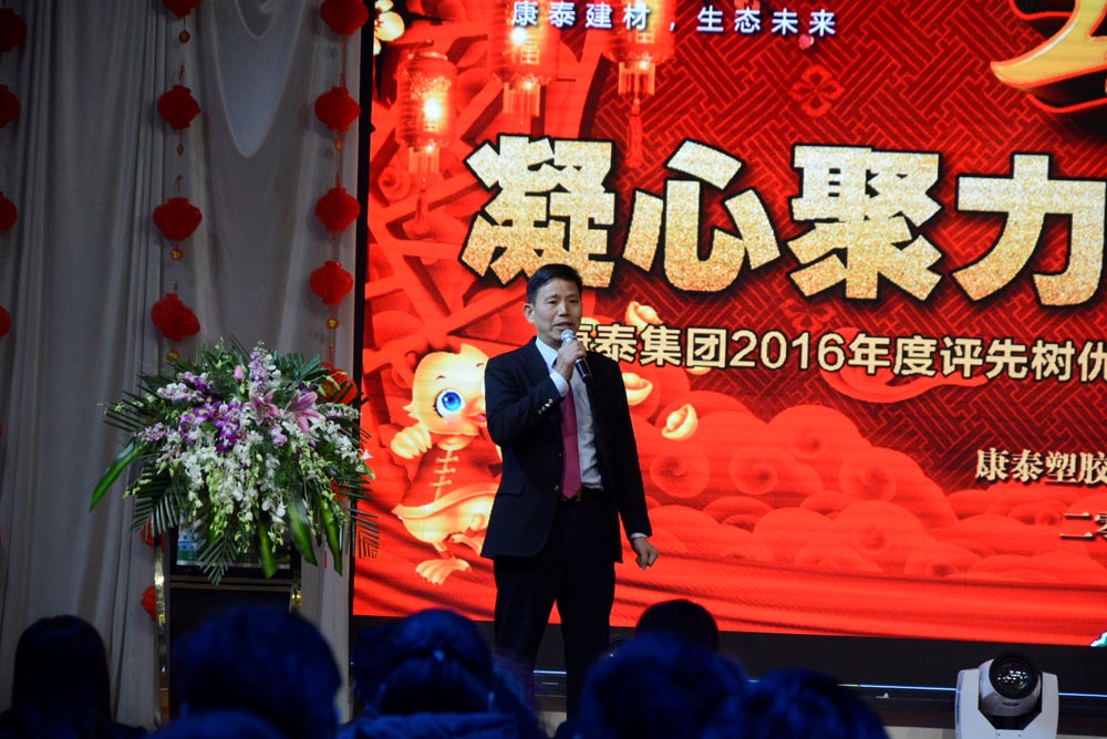 ? ? ? ? 大會(huì)最后,在全體員工熱烈的掌聲中,集團(tuán)董事長(zhǎng)兼總裁林云青發(fā)表了重要講話。林總裁首先對(duì)獲獎(jiǎng)的單位和個(gè)人表示了祝賀,對(duì)全體康泰員工在2016年的辛勤付出表示了感謝,并期望所有獲獎(jiǎng)單位和個(gè)人在工作中起好模范帶頭作用,再接再厲,頑強(qiáng)拼搏,做出更加優(yōu)異的成績(jī)。林總裁表示,2016年在中國(guó)經(jīng)濟(jì)新常態(tài)、塑料管道行業(yè)加劇大洗牌的影響下,全體康泰人不斷探索,不斷拼搏,全力以赴,實(shí)現(xiàn)了同比增長(zhǎng)的目標(biāo)。這是公司全體員工共同努力的結(jié)果,我代表公司股東、董事及管理團(tuán)隊(duì)向你們表示衷心的感謝。今天不代表昨天,明天的成功是今天努力的結(jié)果。林總裁表示,希望全體康泰人在2017年里,再接再厲,取得更大成功。
