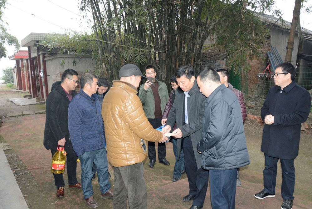 ? ? ? ?春節(jié)前夕,1月18日上午,康泰集團(tuán)董事長兼總裁林云青與崇州市委常委、統(tǒng)戰(zhàn)部部長毛向陽一同前往王場鎮(zhèn)清明村精準(zhǔn)扶貧戶家中開展了節(jié)前慰問,詳細(xì)了解精準(zhǔn)扶貧戶的生產(chǎn)生活狀況,共同探討脫貧致富的路子,并為他們送去了新春問候和節(jié)日祝福。