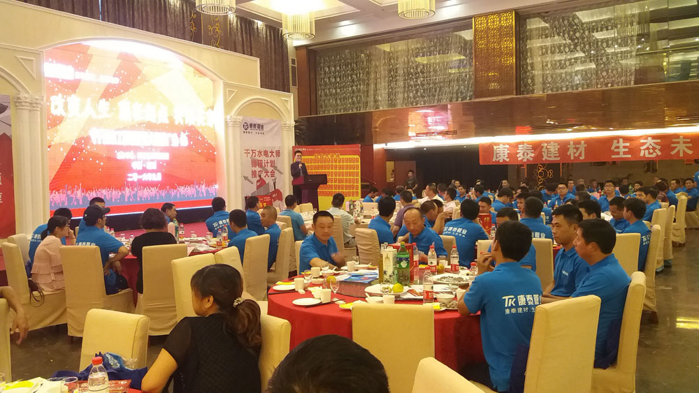 ? ? ? ? “‘改變?nèi)松?、贏在起點(diǎn)、共用共享’浙江康泰千萬水工錦程計劃大型推廣會” 9月23日重回主場浙江湖州。這是繼江西上饒之后的第三場會議。浙江基地總經(jīng)理潘明正、集團(tuán)市場總監(jiān)鄭光鏵、集團(tuán)營銷顧問王楨、浙江基地家裝部總監(jiān)王兵、湖州物流中心總經(jīng)理管俊華等出席會議。湖州區(qū)域水電工、部分重點(diǎn)經(jīng)銷商以及浙江康泰銷售團(tuán)隊全體人員參加了本次會議。
