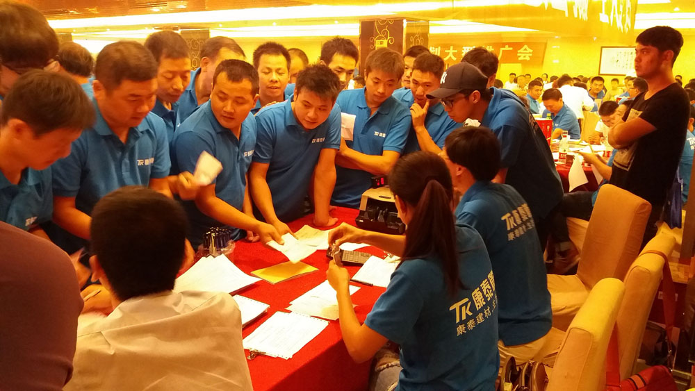 ? ? ??下午4時,會議在湖州皇冠大酒店正式開始。會上,湖州物流中心總經(jīng)理管俊華首先致辭,對廣大水電工的到來表示了熱烈的歡迎;集團(tuán)市場總監(jiān)鄭光鏵就“錦程計劃”的內(nèi)容和目的進(jìn)行了闡述,并強(qiáng)調(diào)了集團(tuán)公司對計劃的支持和配合;浙江基地家裝部總監(jiān)王兵則結(jié)合PPT對公司產(chǎn)品進(jìn)行了詳細(xì)的介紹;集團(tuán)營銷顧問王楨對“錦程計劃”的政策作了講解。會議還邀請水電工進(jìn)行了焊接技術(shù)展示。? ? ? ?“浙江康泰千萬水工錦程計劃”旨在傳播“廠家與服務(wù)商都給你打工,輔助你當(dāng)老板,改變你的人生”的營銷理念,讓更多的水電工加入到“千萬水工錦程計劃”中來。通過前兩場會議的宣傳和造勢,“錦程計劃”已經(jīng)越來越被廣大水電工認(rèn)同和接受。隨著優(yōu)惠政策的不斷推出,參會水電工都對計劃表示出了十足的興趣,會議現(xiàn)場熱情火爆,激情澎湃,過半人數(shù)進(jìn)行了現(xiàn)場簽單。