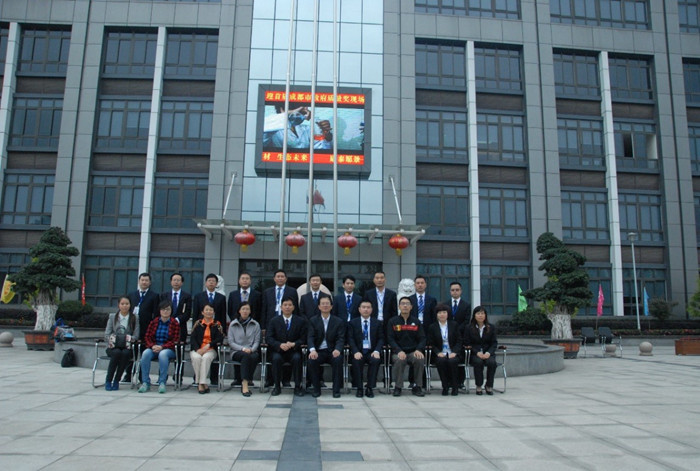 圖五:集團高層與評審小組在辦公大樓前合影留念