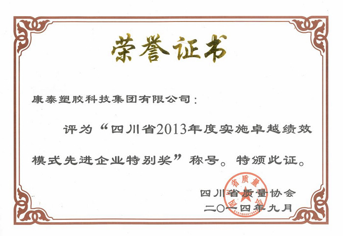 圖二:四川省2013年度實(shí)施卓越績效模式先進(jìn)企業(yè)特別獎