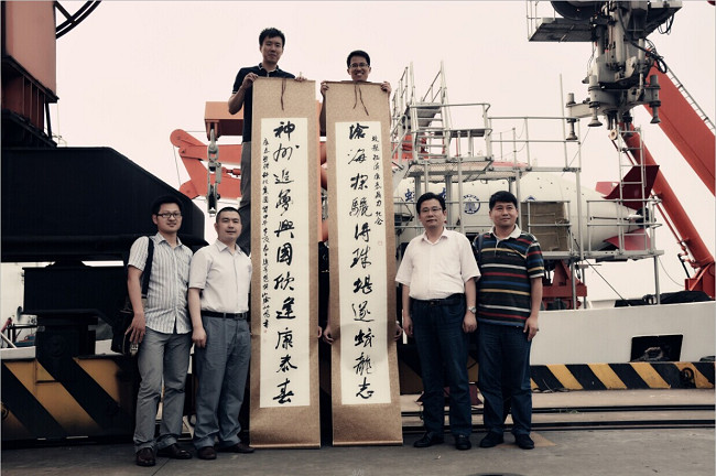 康泰集團(tuán)在蛟龍?zhí)柮媲矮I(xiàn)禮祝愿