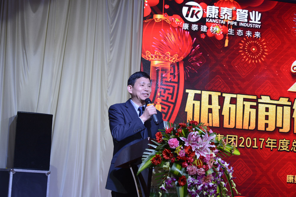 會上,集團董事長兼總裁林云青發(fā)表了重要講話。林總裁首先對獲獎的單位和個人表示了祝賀,對全體康泰員工在2017年的辛勤付出表示了感謝,并期望所有獲獎單位和個人在工作中起好模范帶頭作用,再接再厲,頑強拼搏,做出更加優(yōu)異的成績。林總裁表示,今天不代表昨天,明天的成功是今天努力的結(jié)果。希望全體康泰人在2018年,再接再厲,再立新功。