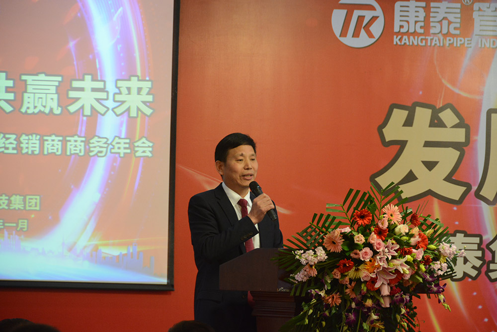 會議最后,在熱烈的掌聲中,康泰集團董事長兼總裁林云青作了總結(jié)講話。林總裁首先對獲獎經(jīng)銷商表示了祝賀,同時對大家為康泰集團的發(fā)展獻計獻策、拼搏奮斗表示了感謝。林總裁表示,回顧2018年,在全國經(jīng)銷商合作伙伴的鼎力支持下,在全體員工的共同努力下,我們實現(xiàn)了23%的同比增長,超額完成既定目標。2018年,我們著重打造了三駕馬車:第一戰(zhàn)略馬車。成立了戰(zhàn)略合作部和工程管理部,成功簽約融創(chuàng)、華夏幸福等,基本實現(xiàn)與房地產(chǎn)前20強的全部合作;第二經(jīng)銷商網(wǎng)絡(luò)馬車。2018年,我們經(jīng)銷商的數(shù)量和質(zhì)量都有了進一步的提升,經(jīng)銷商網(wǎng)絡(luò)越來越強大;第三市政馬車。2018年,實現(xiàn)了與中燃、新奧等大型燃氣的合作。同時,在通信、電力、排污、水環(huán)境等領(lǐng)域也基本實現(xiàn)了戰(zhàn)略合作。此外,我們的六大生產(chǎn)基地全面成型,整體管理逐步規(guī)范、質(zhì)量管理逐步完善、企業(yè)形象逐步提升。這些都為我們的成功發(fā)展奠定了基礎(chǔ)。